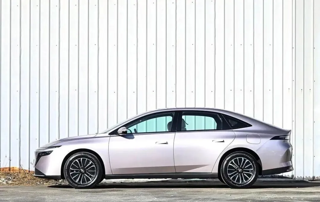 再来看车身侧面部分,2026款日产N6采用修长舒展的造型,以“低风阻+大空间”为核心设计理念,车身线条流畅平直,搭配低趴姿态,既凸显轿车的优雅,又能有效降低行驶风阻。新车车身尺寸达到4831×1885×1491mm,轴距高达2815mm,媲美中型轿车,这样的尺寸不仅保证了车身比例的协调,更为车内充裕空间奠定了坚实基础。车身侧面配备贯穿式腰线,从车头大灯延伸至车尾尾灯,线条平滑流畅,进一步拉长车身视觉长度,同时凸显出车身的饱满质感。车窗线下沿的贯穿弧线与底部硬朗侧裙线条形成鲜明对比,C柱锐利三角窗增添运动气息,隐藏式门把手设计既提升了整车的科技感,又降低了行驶风阻。