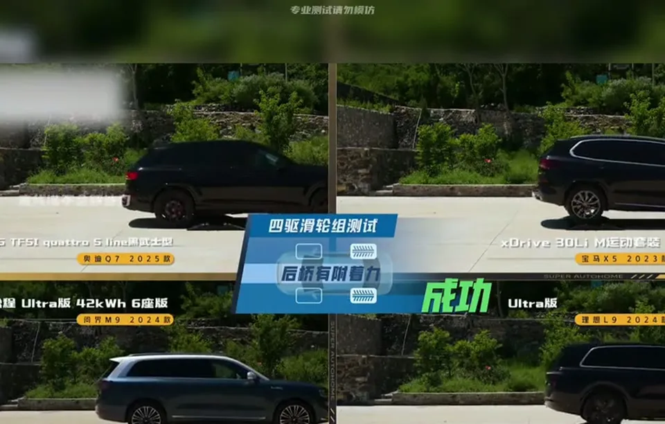 参战的四台车都是重量级选手:有”公路之王”宝马X5,真正的夸戳奥迪Q7,还有问界M9和理想L9。