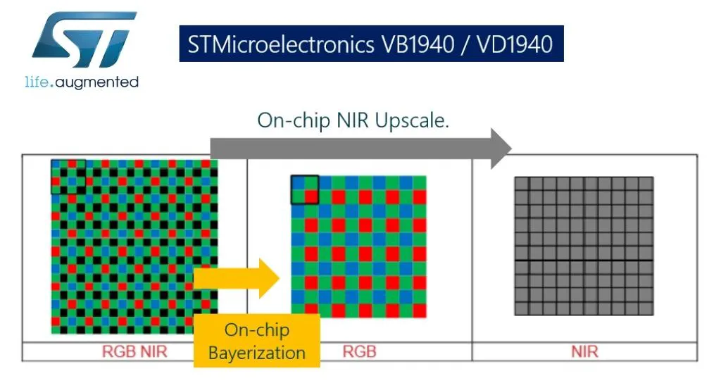 其最新发布的舱内传感器VB1940/VD1940,该传感器采用堆叠式背照设计,具有4×4 RGB-NIR模式(NIR滤镜可增强940nm波长的检测能力)。其主要应用场景为驾驶员监控和舱内监控。