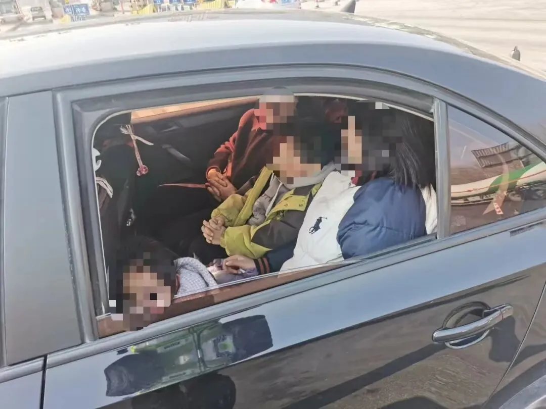 1月24日,高速交警四支队八大队民警在垣曲西收费站开展违法查处集中行动中,13时50分许,一辆晋M号牌的黑色轿车缓缓驶入检查区域,民警隐约看到该车后排人头攒动,待其将后排窗户落下,就看到后排挤坐着4人(1大3小),其中1名儿童蹲坐在座位下。