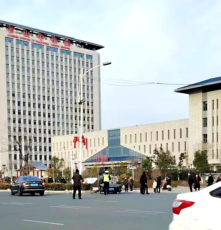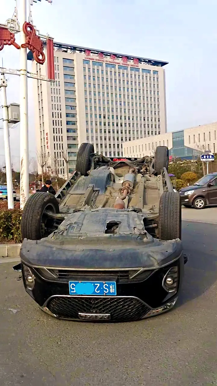 昨天下午,罗山新区中医院门口一辆黑色大众轿车和一辆黑色哈弗SUV发生碰撞,SUV侧翻成四脚朝天。