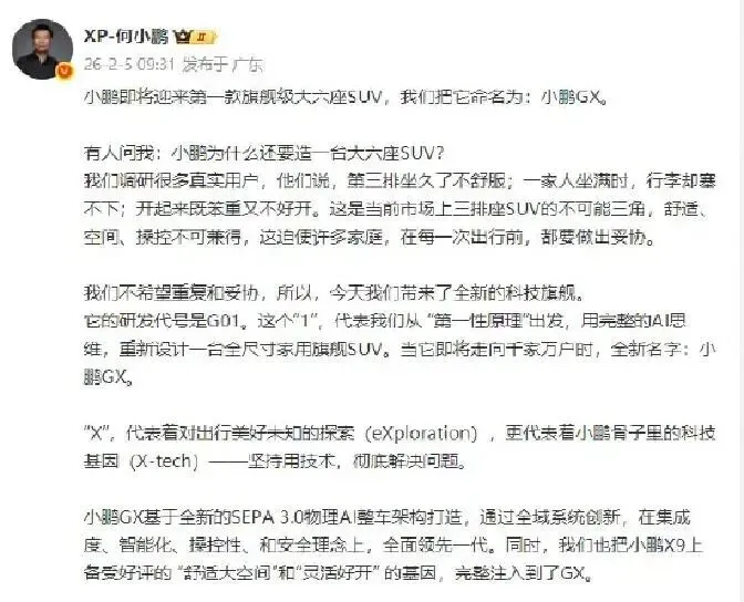 # 小鹏GX来了!这次,全家出行不用再“凑合”