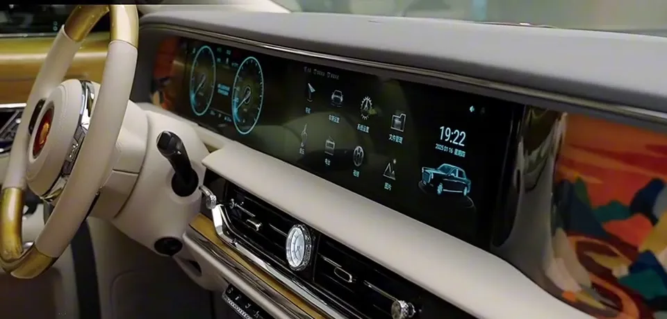 以巴洛克风格为基础,融合双12.3英寸液晶屏和12.8英寸辅助屏幕,支持裸眼3D效果,与HUD抬头显示。
