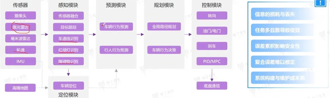 自动驾驶是一个复杂的软硬件综合系统,典型的自动驾驶系统架构主要包括感知和定位、决策规划、以及控制执行三大部分。