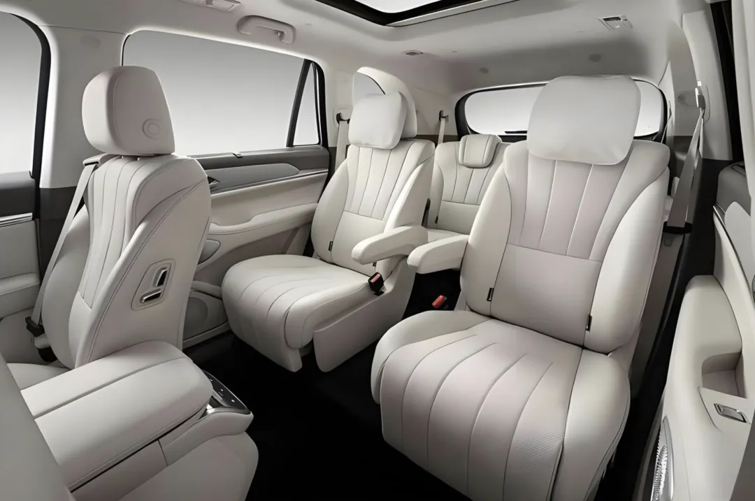 进入车内,魏牌V9X的设计布局更加简约、时尚。大面积灰色的Alcantara面料、Nappa真皮材质、浅灰色植绒面料、金属织物soft jewel材质的铺陈,再加上与车身同色的水泥灰色的装饰面板,注重材质和氛围的营造。简洁凝练的中控台带来了更加清爽的感觉,设计不复杂,但该有的功能却一样都不少。中控台配备了异型多功能方向盘,怀挡式换挡机构,将会拥有全新的操控体验和驾驶感受。中控台配备了魏牌汽车全新设计的异型多功能方向盘,还有经典的怀挡换挡机构,还标配了全液晶仪表+中控屏+副驾驶多媒体大屏组成的大尺寸带鱼屏设计。配备了符合人体工程学设计的沙发座椅,支撑性和包裹性恰到好处,并悉心的配备了宽大的头枕,带来了豪车级的尊享感受。智能座舱清洁、CN95车规级空调滤芯、AQS空气质量自动控制等配置配合下,带来更安静、舒适、健康、智能的座舱环境。