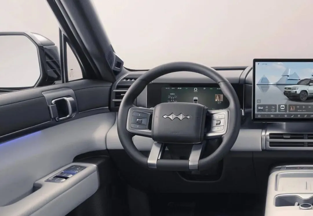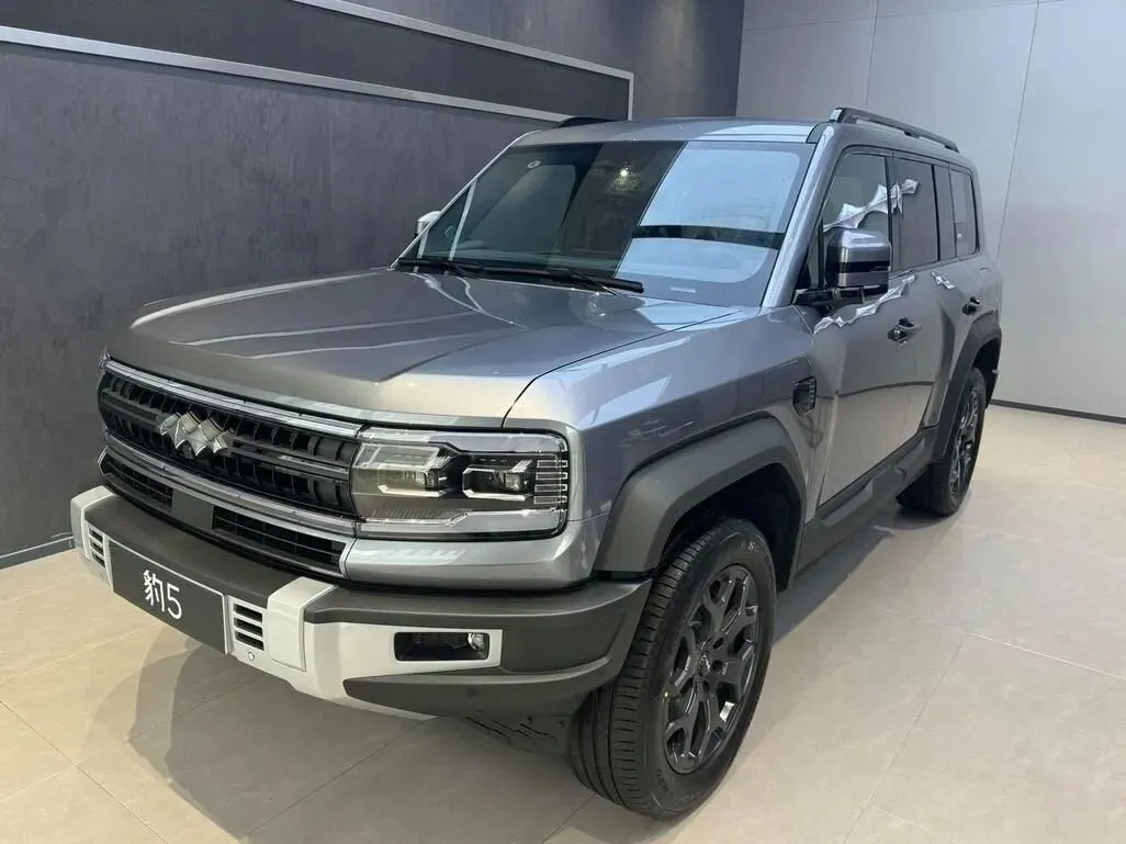 先说.外.观吧,这俩车.风格就不一样。豹5是一个典型的硬派方盒子造.型,车身比例特别正,尤.其是那种竖条中网,远.远看过去就一个“很.壮”的感觉。而钛7明显.更.现代,更像是城.市SUV,但也.保留了一点越野姿态。这个设计取向其实.挺聪明的,城.市.用户多嘛。个人从视觉上我更喜欢豹5,尤其那个小书包样式.的.备胎罩,硬.派值.直接拉满。然后.车漆的质.感我摸了一下,豹5的新蓝色金属.漆手感还不错,就是我觉得有一点点薄,一会儿回来看内饰。