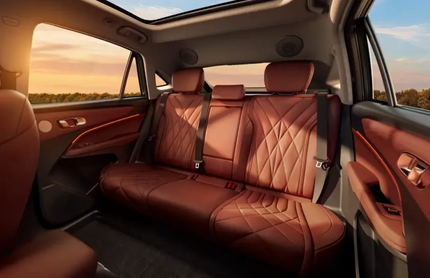 内饰方面,新车内饰采用环抱式对称布局,车内应用大量的皮质包覆和菱形缝线,细节处的钢琴黑饰板提升了质感,配备14.6英寸高清悬浮式中控屏,怀挡设计为扶手区留出更大空间,拥有手机无线充电面板,下层是超大的储物格。