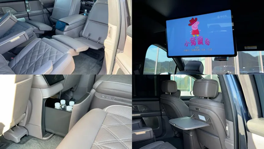 因为从功能的完整度上来说,豪华版的配置其实已经很顶了,像副驾+二排的零重力座椅、21.4英寸的天空屏、27喇叭的杜比全景声音响、900V平台……这些都是标配,日常使用你几乎挑不出什么缺失的地方。