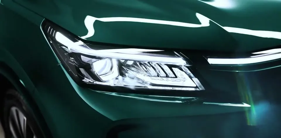 外观整体是偏向于大气舒展的那一卦,通过整合SUV市场比较受欢迎的几个要素:路虎风格的前脸、纯平的侧窗、双色车身、密辐的轮毂、黑化B柱C柱,