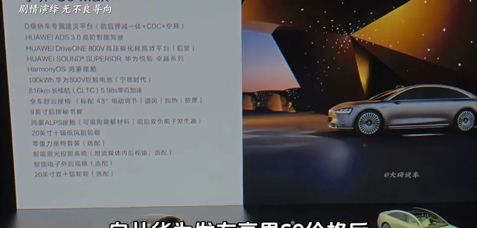 智驾将搭载华为目前最强ADS3.0高阶智能驾驶系统。