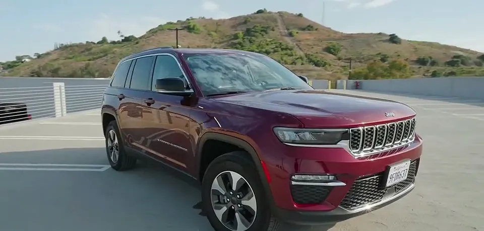 吉普大切诺基外观展示,经典七孔格栅设计动力系统走的是“更省更稳”:全系标配混合动力,1.6T+两台电机,综合210马力、230磅英尺扭矩,技术路线类似丰田RAV4那套传统油混,综合油耗37MPG,续航超500英里。它不是最野,但确实更像“每天能开、周末能撒野”。