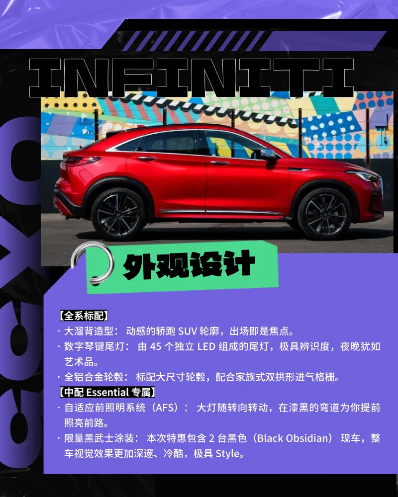 有这么一台车,它生来就是为了打破平庸。它拥有轿跑 SUV 的绝美大溜背,自带“有型有味”的奢华气场。最重要的是,本月惊现史低好价——让你用最低的门槛,直接跳级进阶英菲尼迪的精致生活,让开车的你,从车流中脱颖而出。