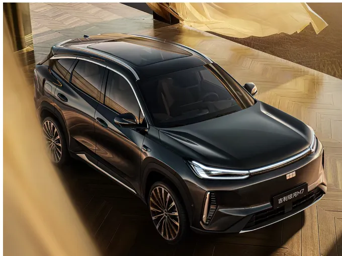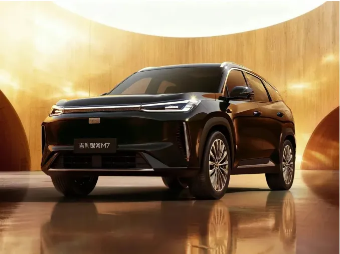 银河M7走的是家族化路线,前脸叫“飞檐虎视”。封闭式格栅配贯穿式灯带,跨度超2米,362颗LED+500个激光镭雕细节,夜晚识别度拉满,妥妥“灯厂”范儿。官方说有效光照距离能打到200米,这在山路和高速夜行很实用,不是纯摆造型。