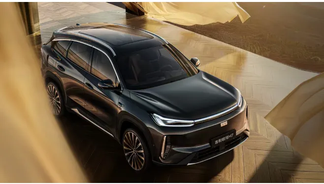 银河M7的核心,是一套以效率为王的插混系统。架构基于eCMA,动力总成是1.5L自然吸气发动机+电机,匹配单挡DHT,发动机最大功率82kW。电池是自研自产的神盾金砖磷酸铁锂,给到18.4kWh和29.8kWh两种容量。CLTC工况下,纯电续航最高225km,综合续航1730km,馈电油耗3.35L/100km。