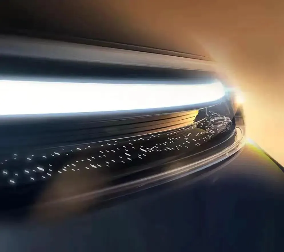 前脸融入飞檐、虎视的中国美学设计风格,日行灯采用翘角锐利设计和三点式灯组,更符合中式审美。宽幅贯穿灯组内部使用激光雕刻的星辉式灯组,提升豪华感。全封闭式前脸两侧保留进气坝设计,将之前的垂向LED灯组改为镀铬饰条,使整体设计更显豪华。