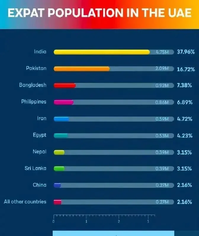 阿联酋本国人口才1000万,90%是外国人。出租车司机?基本是巴基斯坦、印度、非洲来的劳工。