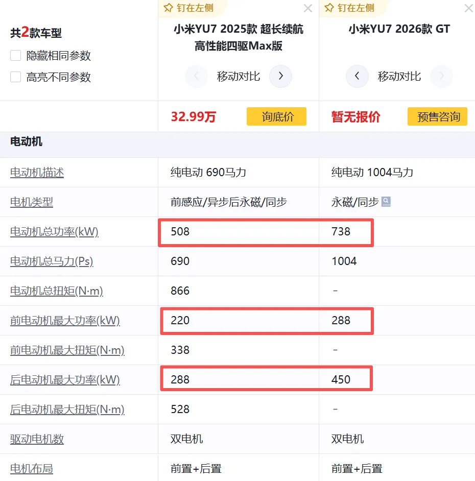YU7 GT的参数引人注目,其中的YU7 Max版型配备了功率强大的电机,最大功率达到508kW,继续延续小米在性能方面的出色表现。