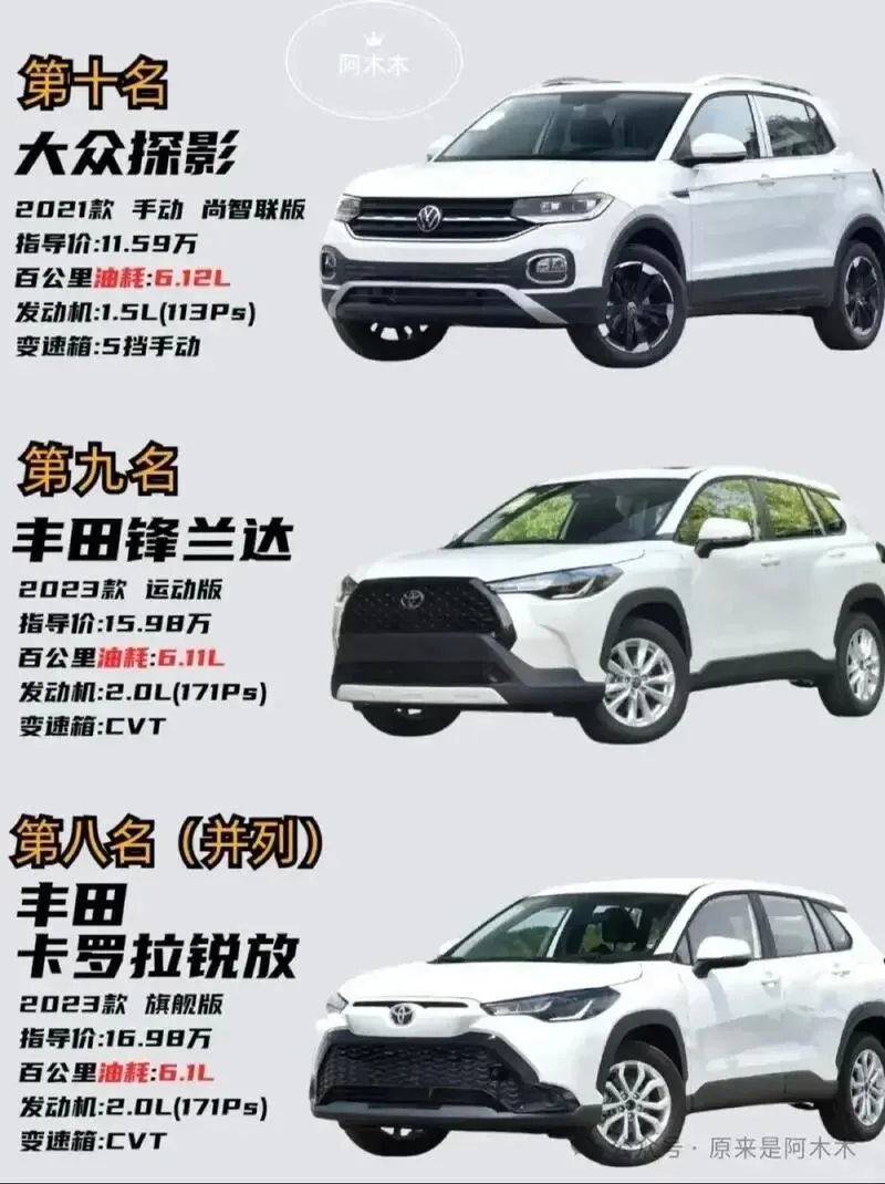 途岳、卡罗拉锐放这些车,2023年销量就稳居前列,2025年油耗榜印证了: