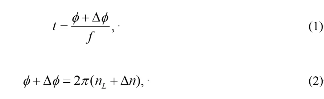计算距离的一种常见方法是相位测量法,通过测量并记录光信号在往返激光雷达之间的时间,从时间信号反推成像系统到目标的距离信息。具体流程如下:经过驱动的激光器发出重复频率为f的脉冲激光,该信号在飞行距离L上往返一次的过程中产生相位延迟φ,则该信号在此过程中所用的时间如下: