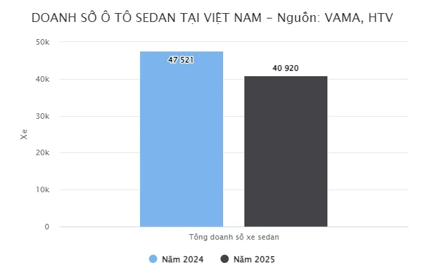 尽管汽车市场整体购买力正在逐步复苏,但并非所有车型都能分享这一增长红利。VAMA数据明确显示,2025年越南轿车销量较2024年出现大幅下滑:其成员企业的轿车总销量仅预计为40920辆,较上年减少超过6600辆,同比降幅接近14%。