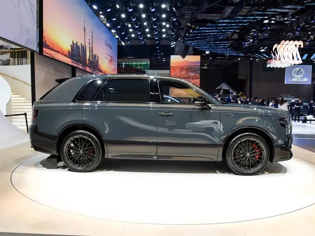 再来看车身侧面部分,车身侧面延续世极系列的修长规整线条,同时融入GR专属运动套件,营造出沉稳又动感的视觉效果。新车尺寸表现出众,兼顾气场与空间,车身宽度较普通世极车型进一步增加,搭配GR专属降低的悬挂高度,营造出低趴稳健的姿态,打破了大型SUV“笨重”的固有印象。车身线条简洁凌厉,一条锋利的腰线从车头贯穿至车尾,勾勒出饱满的车身轮廓,同时增强了车身的层次感,轮眉处的隆起筋线,进一步凸显宽体气场与肌肉感。