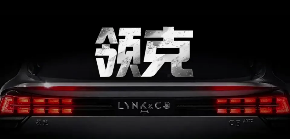 领克汽车尾部设计,展示品牌标识和车型名称。
