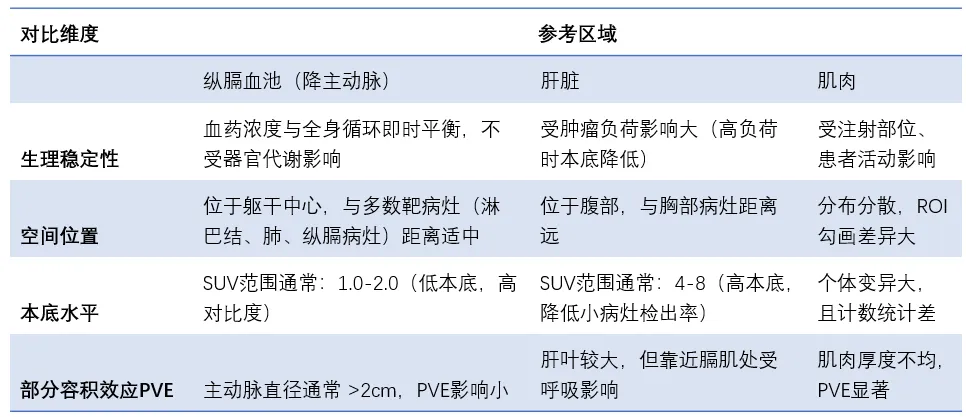 纵膈血池(Mediastinal Blood Pool,通常选取降主动脉)是稳定的"生物参考标准",具有以下独特优势: