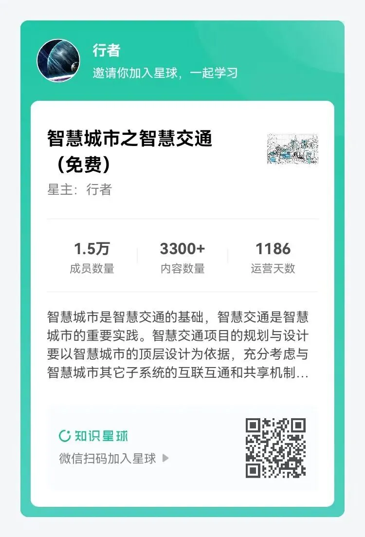 扫描加入免费的「智慧城市之智慧交通」知识星球可了解更多行业资讯和资料。