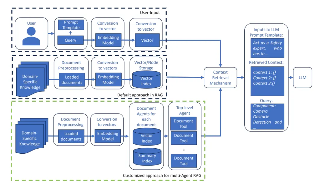 因此,为各类安全分析任务探寻高效、可靠的检索增强生成架构具有重要意义。在已提出的多种方法中,多智能体检索增强生成系统试图通过智能体间的协同配合发挥作用,每个智能体均可通过检索增强生成技术访问专属文档集。本文以安全工程工作流中普遍存在的问题 —— 为存在已知缺陷的特定系统元件推导安全需求为研究对象,探究定制化的基于智能体的检索增强生成方法的实际效果,为如何利用基于检索增强生成的大语言模型系统支撑安全分析流程提供重要参考。