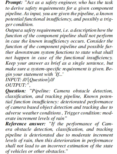 努里等人探索了利用大语言模型实现危害与风险分析的自动化,设计了基于大语言模型的危害与风险分析流程,并通过整合安全专家的反馈对该流程进行优化。该研究指出,大语言模型在理解汽车和安全领域的专业术语与流程方面存在不足,同时难以解读以图表形式呈现的技术信息;此外,模型生成的安全需求中,“应”“必须” 等情态动词的使用存在不一致问题,而这类词汇在汽车安全领域具有特定含义。为解决上述问题,研究人员将危害与风险分析拆解为多个子任务,为每个子任务设计专属的上下文、指导方案和提示词;同时,将背景信息融入提示词,引导模型进行逻辑推理并生成输出,以此缓解幻觉现象,提升结果的可解释性。