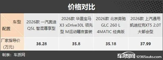 本次推荐的四款车型分别为奥迪Q5L、宝马X3、奔驰GLC L和凯迪拉克XT5。作为国内认知度最高的豪华品牌,“BBA”的三款中型SUV自然不会缺席;而凯迪拉克XT5作为品牌销量的中坚力量,长期活跃在主流市场,在国内同样具备不俗的关注度(由于目前图片数量较少,因此部分车型的图片并不是相对应的具体款型)。