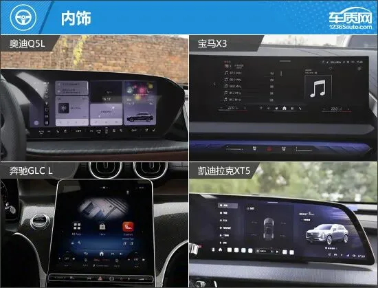 在内部配置方面,奥迪Q5L与宝马X3的整体表现更为突出。前者不仅配备了副驾娱乐屏,座椅相关功能也较为丰富;后者则在便利性配置上占优,是四款车型中唯一标配ETC装置和后排手机无线充电的车型。相比之下,奔驰GLC L的基础配置略显保守,部分功能需要通过选装来进一步完善。