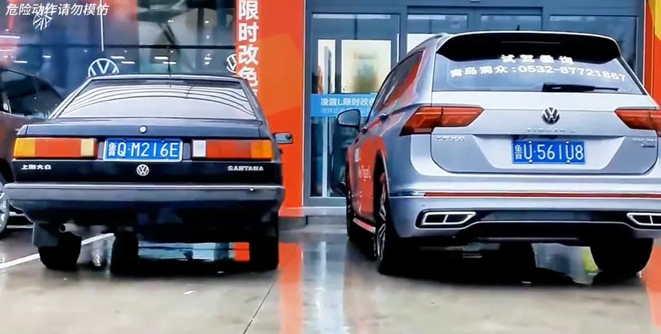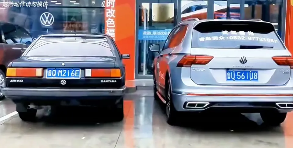 大众桑塔纳和大众途观停在一起,对比底盘高度