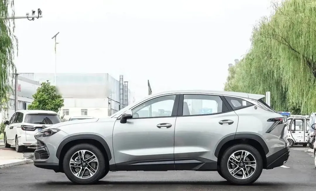 再来看车身侧面部分,车身侧面线条流畅,溜背式车顶与上扬腰线勾勒出轿跑SUV的蓄势姿态。4600mm×1900mm×1685mm的尺寸中,1900mm的车宽配合2720mm长轴距,实现空间最大化利用。 轮拱肌理饱满,搭配大尺寸厚壁轮胎,既强化运动感又保障稳定性。侧围设计避免冗余,强化战斗氛围。 这种设计在紧凑型SUV中独树一帜,兼顾美学与功能性。