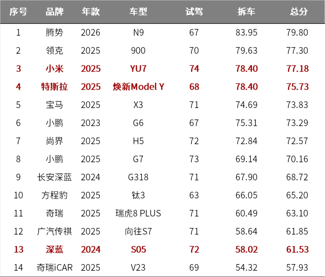 试驾:72分 / 拆车:58.02分 / 总分:61.53分