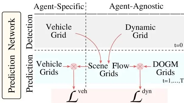 通过这种方式,场景流就成了连接专用预测(车辆)和通用预测(动态占据)的桥梁和“监督员”。模型被迫学习一个全局一致的运动场,这个运动场既要能解释被明确识别车辆的运动,也要能合理地推断那些未被识别物体的运动趋势。