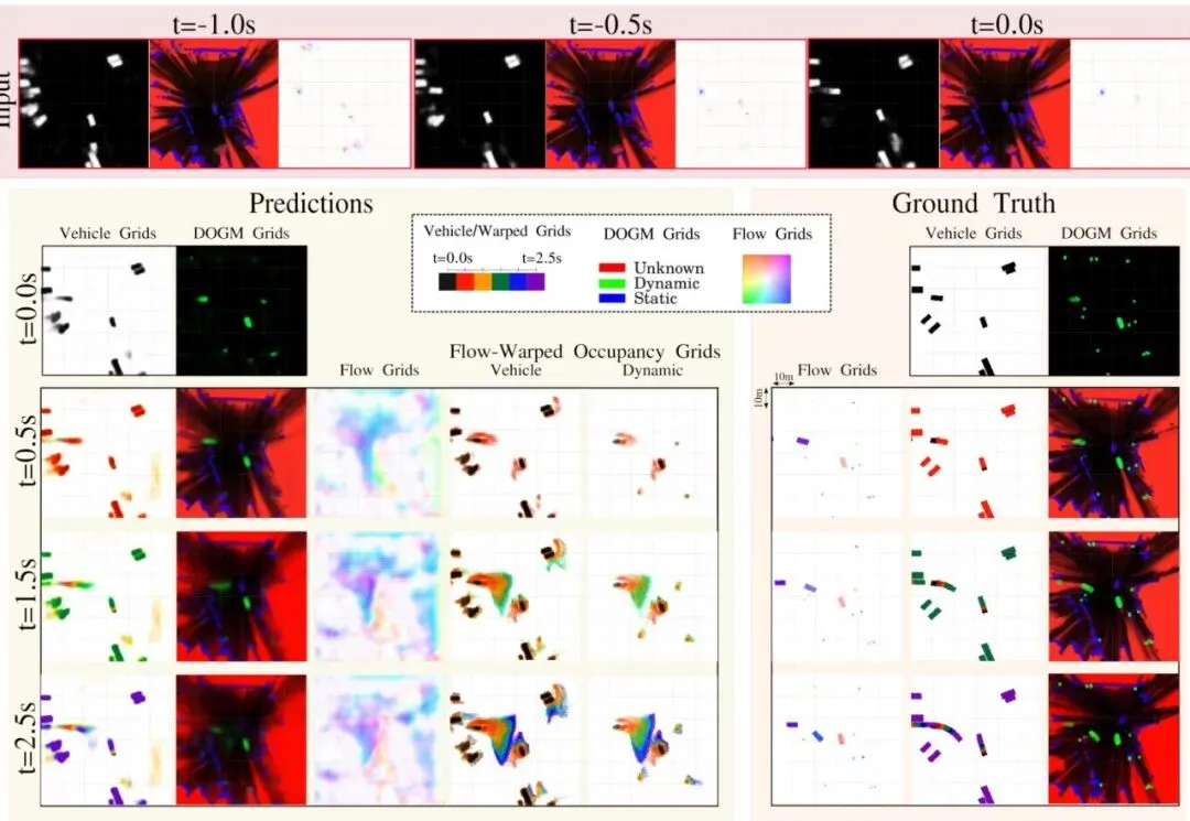 这就好比,你不仅预测了“那辆出租车会向右移动3米”,还预测了“它覆盖的那些格子会整体向右平移”,并且这两件事必须匹配。同时,对于那些没有被识别为车辆的“动态格子”,模型也必须为它们预测出一个合理的“流”。这样一来,即使是没被认出来的行人,模型也能根据周围格子的运动趋势,“猜”出他可能怎么动。