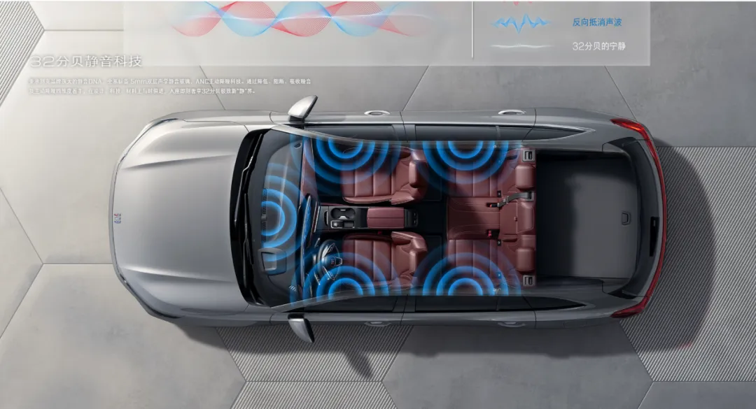从车身结构的优化,到大量高性能声学包材料的应用,再到ANC主动降噪科技的运用,它成功营造出一个与外界纷扰隔绝的移动静谧座舱。