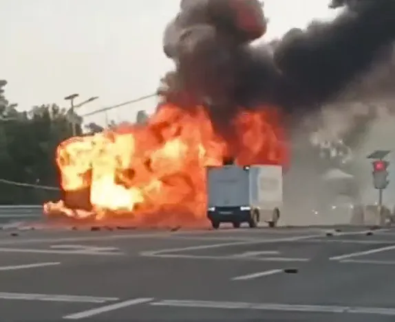 而同样是一辆无人送货车硬生生顶着火焰冲了出来,那画面过于震撼,成为了不少网友难以遗忘的经历。