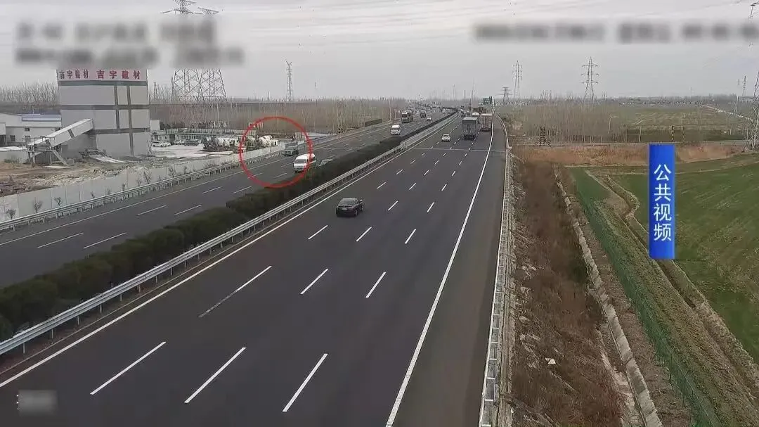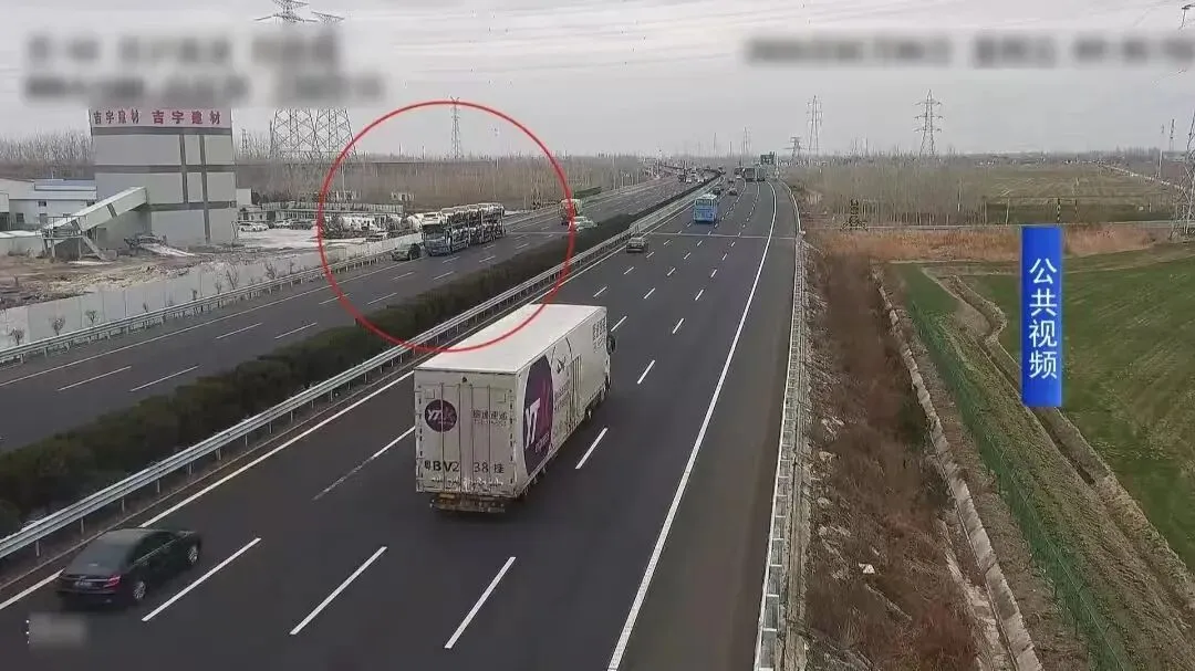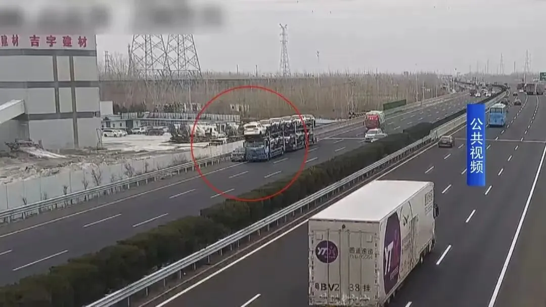 公共视频显示,事发当天上午9点多,一辆小轿车在行驶中紧急停靠在应急车道内。紧接着,后方一辆重型运输车沿第四车道行驶至该路段,车辆摇摇晃晃,其右侧车身与小轿车左侧发生猛烈碰撞,两车均出现不同程度损伤。