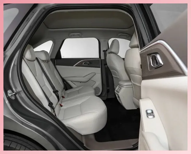 后排座椅有头枕,皮革材质柔软,和前排用料一致,还有氛围灯,木纹饰板和镀铬条等装饰,后排档次感很好。