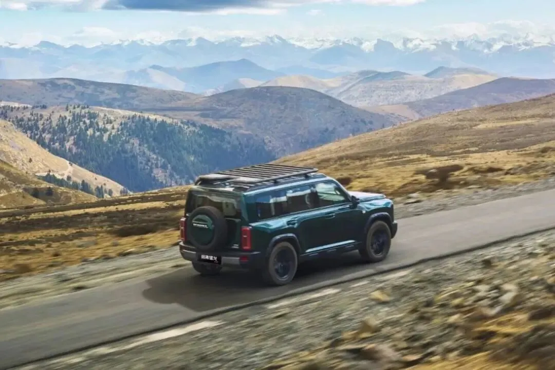 哈弗猛龙采用了我们熟悉的经典方盒子造型,尽管定位为紧凑型SUV,但其大气舒展的轮廓却呈现出十足的越级气场,视觉上完全媲美B级SUV。细节处,复古的圆形大灯、充满力量感的引擎盖线条,以及侧面的实用踏板和车顶平台,共同强化了这份与生俱来的硬派形象。车型侧面与丰田普拉多比较类似。至于尾部,采用了备胎后挂的造型,而且也是单侧开门的方式,再加上不错的离地间隙,这是我们熟悉的越野车造型。