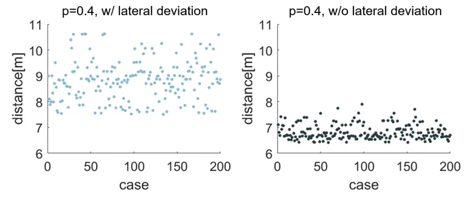 图10. 在有无侧偏条件下,场景1的统计实验结果