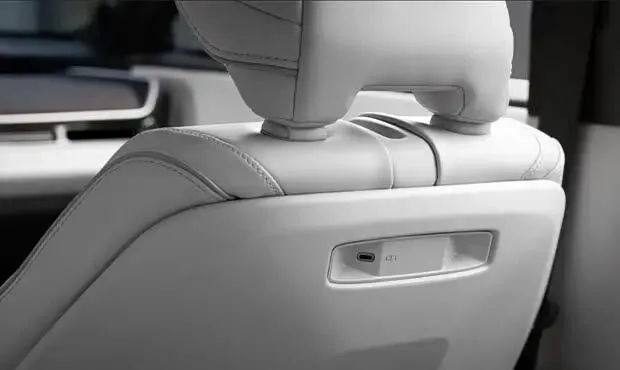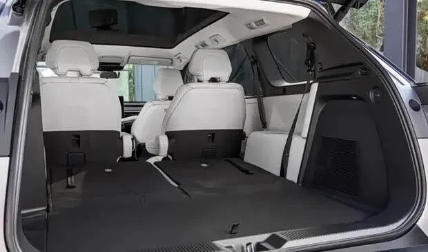 内饰方面,车辆搭载14英寸中控屏与12.3英寸仪表屏,支持无线Apple CarPlay及Android Auto互联功能。三排座椅均配备充电接口,全景天幕可作为选装,同时车内提供64色氛围灯,营造出较强的科技氛围。座椅标准材质为SofTex人造皮革,前排座椅加热为标配,通风功能及第二排加热则需选装。全车设有18处储物空间,第三排座椅放倒后,后备厢容积可超过1274升。