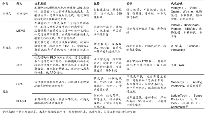 | | | SiPM(905nm禾赛速腾用)(弱光灵敏度比APD更高) SPAD(禾赛AT512用) APD(1550nm,途达通用) +接收链路芯片 | | SPAD(更适合Flash方案,单位芯片面积下像素数优于SiPM) | |