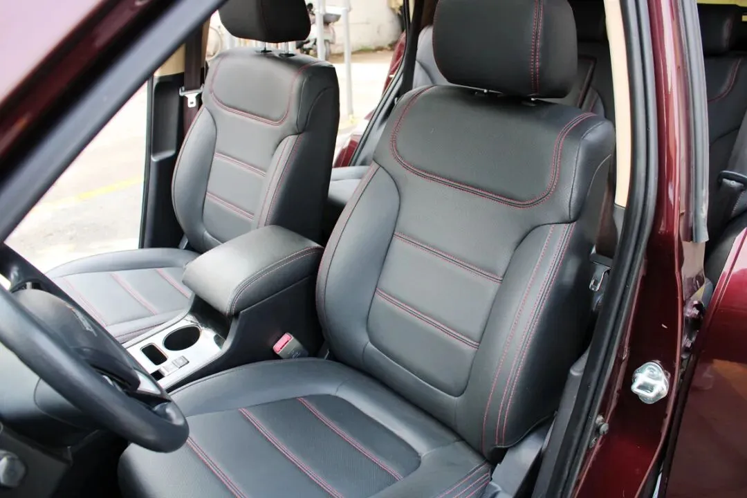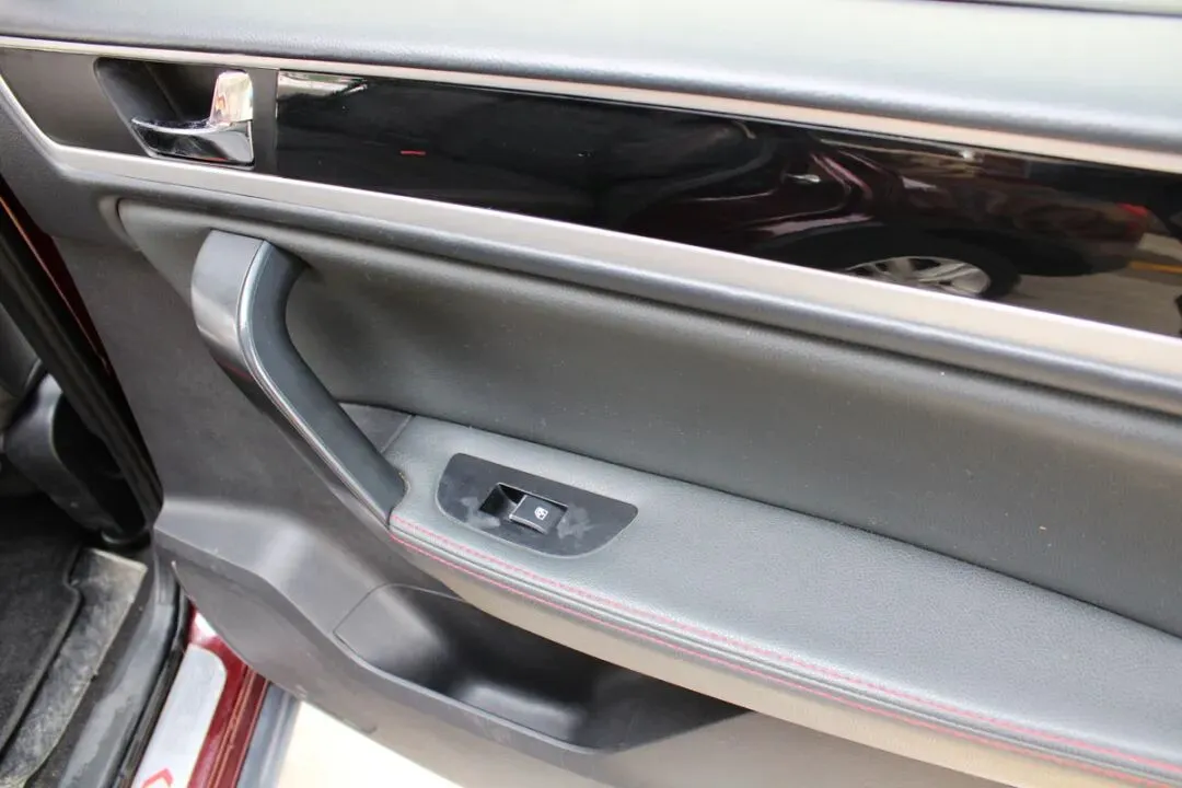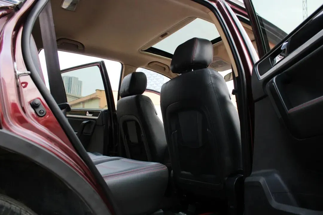 打开车门第一眼就觉得舒服,黑色内饰干净清爽,没有烟味、霉味,原车主明显是个爱干净的人。电调真皮座椅全程套着座套,拆掉后座椅没有塌陷、没有褶皱,侧翼的皮质都很紧实;多功能方向盘握感饱满,没有一点磨痕,按键回弹灵敏;电子手刹、自动空调的旋钮阻尼感还在,中控导航屏没有划痕,天窗开启顺畅不卡顿,就连脚垫的边角都没有磨破,看得出来这台车平时就是市区短途代步,压根没造过。