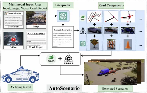 AutoScenario 框架依托多模态解释器,可基于文本、图像、视频等多源输入生成安全关键场景。该框架在生成场景时,会突出冲突场景的核心要素,同时对其余要素进行泛化处理,从而实现输出场景的多样化。