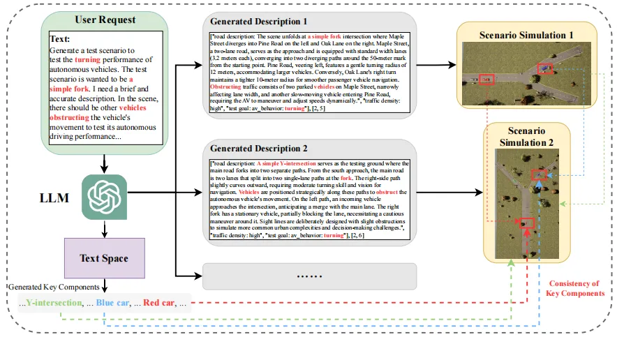 基于安全关键场景的测试是自动驾驶领域的核心紧迫难题,该领域需要大量多样化、高度可控的测试场景,而现有方法仍无法充分满足这一需求。本研究旨在依托大语言模型,通过文本、图像、视频等多模态输入,实现安全关键场景的可控、高效生成,同时保证场景的多样性。