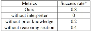 表 3 为 AutoScenario 框架的消融实验结果,本实验围绕场景生成过程的三大核心环节 —— 解释器、组件生成器、场景生成器,验证各环节关键设计的有效性。