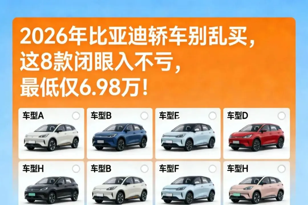 咱先说点大实话:以前买电动车,不是怕续航焦虑,就是怕配置拉胯。现在比亚迪直接把“省”字刻进DNA里。2026年2月这波阵容,从6万到20万+,8款车每款都像开了挂——不是“将就”,是“真香”。